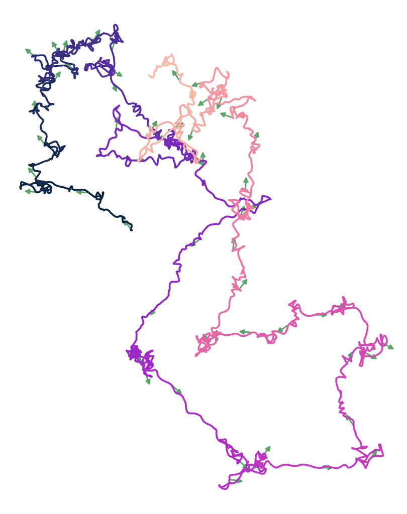 To model the dynamics of such systems that self-propel with a destination they want to reach, I and co-workers (Daniel Hexner and Dov Levine) introduced Self-Navigating Particles, particles that self-propel towards a particle-specific goal (particle 1 has its fixed home and particle 2 its restaurant it wants to reach) with some finite relaxation time to re-orient self-propulsion after interactions with the environment sends it astray.